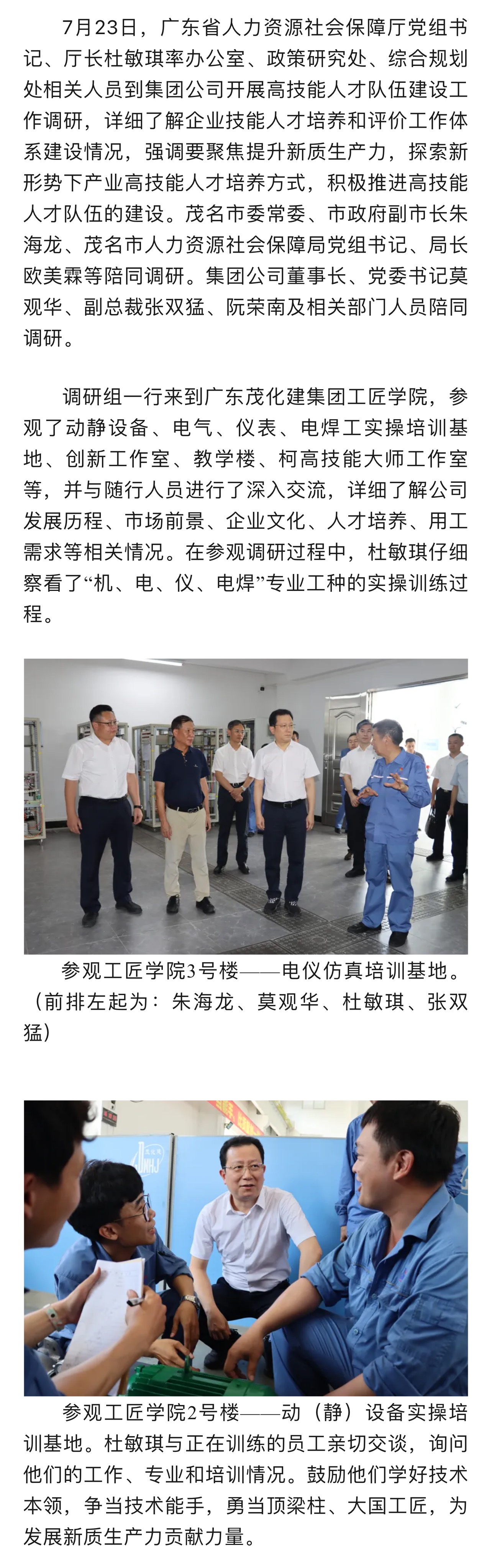 廣東省人社廳到集團公司調研高技能人才隊伍建設工作
