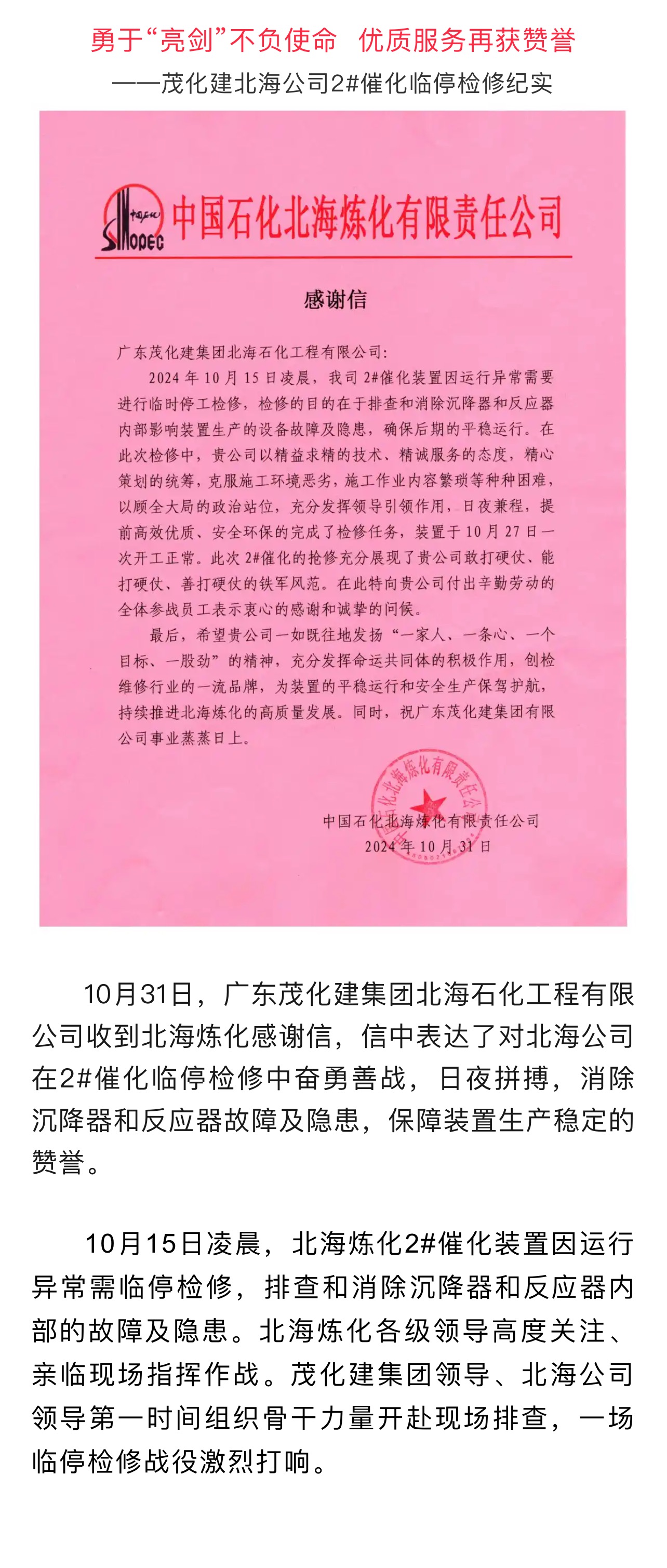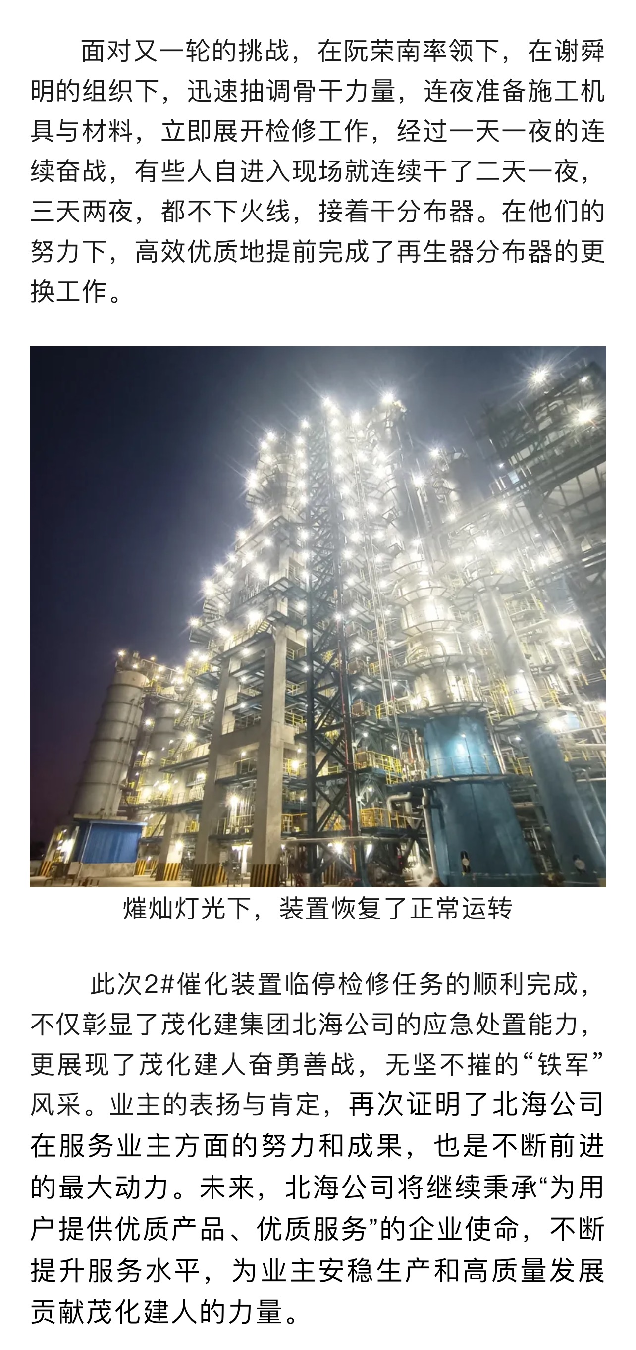 茂化建北海公司2#催化臨停檢修紀實