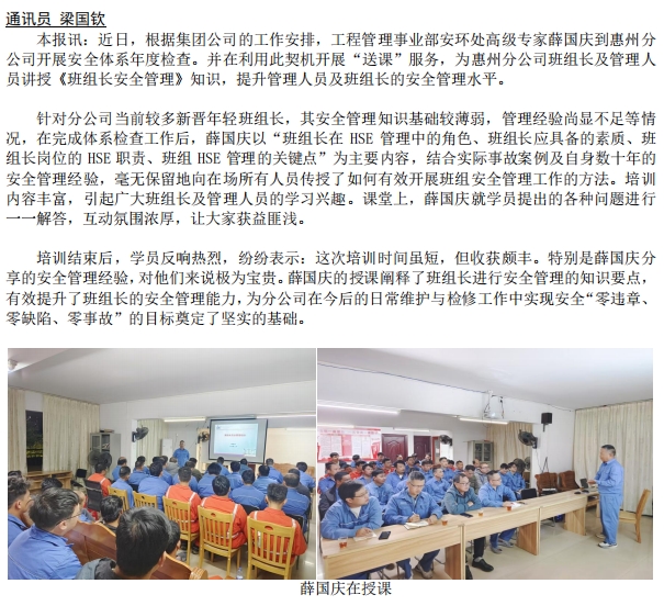 集團(tuán)公司安環(huán)處“送課”到惠州分公司