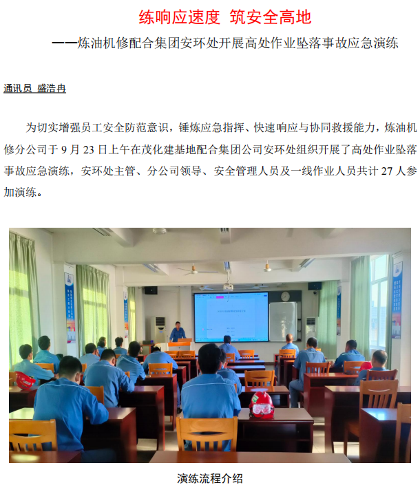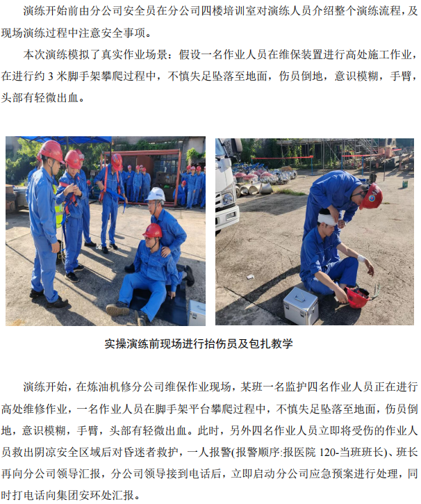 煉油機(jī)修配合集團(tuán)安環(huán)處開展高處作業(yè)墜落事故應(yīng)急演練