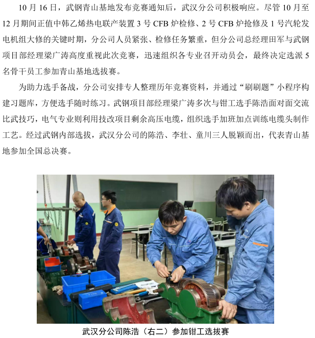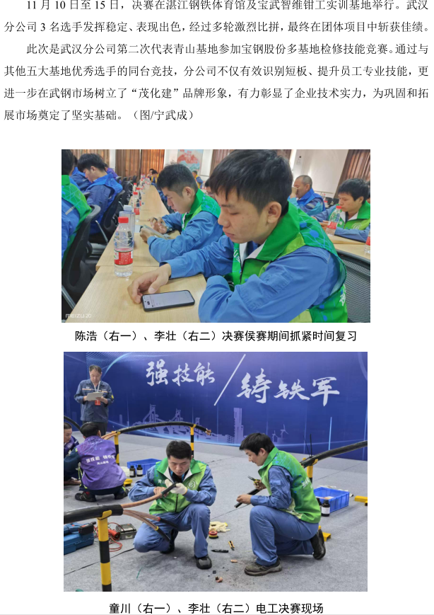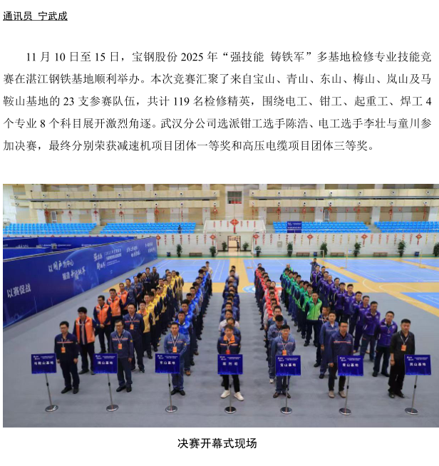武漢分公司在寶鋼股份2025 年多基地檢修技能 競(jìng)賽中榮獲佳績(jī)