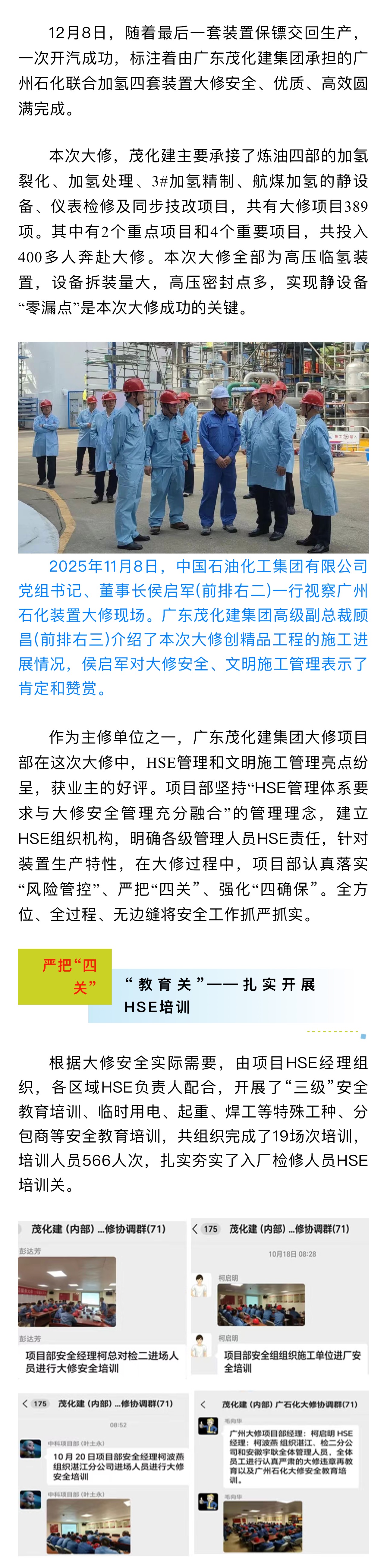 嚴把“四關(guān)” 強化“四確保” | 廣東茂化建集團圓滿完成廣州石化大修