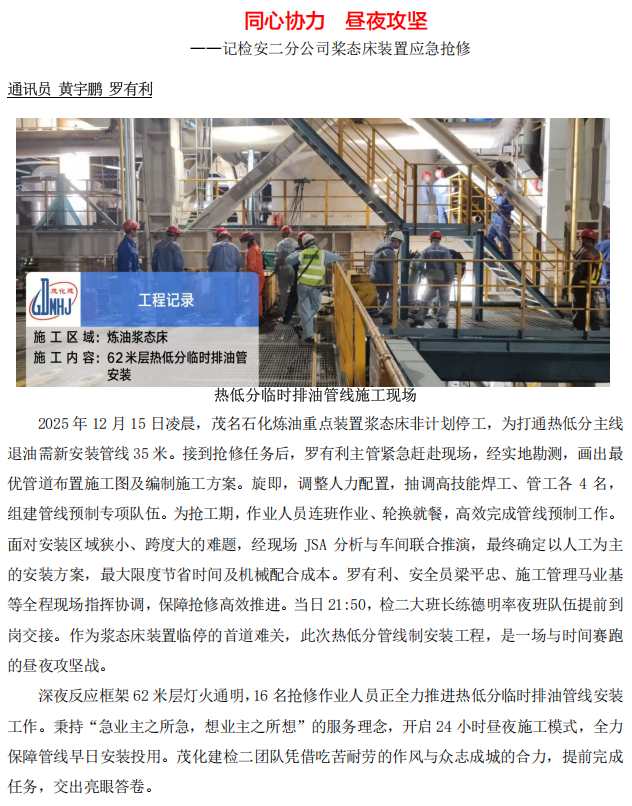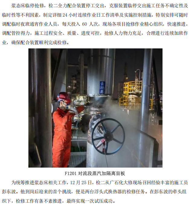 記檢安二分公司槳態(tài)床裝置應急搶修